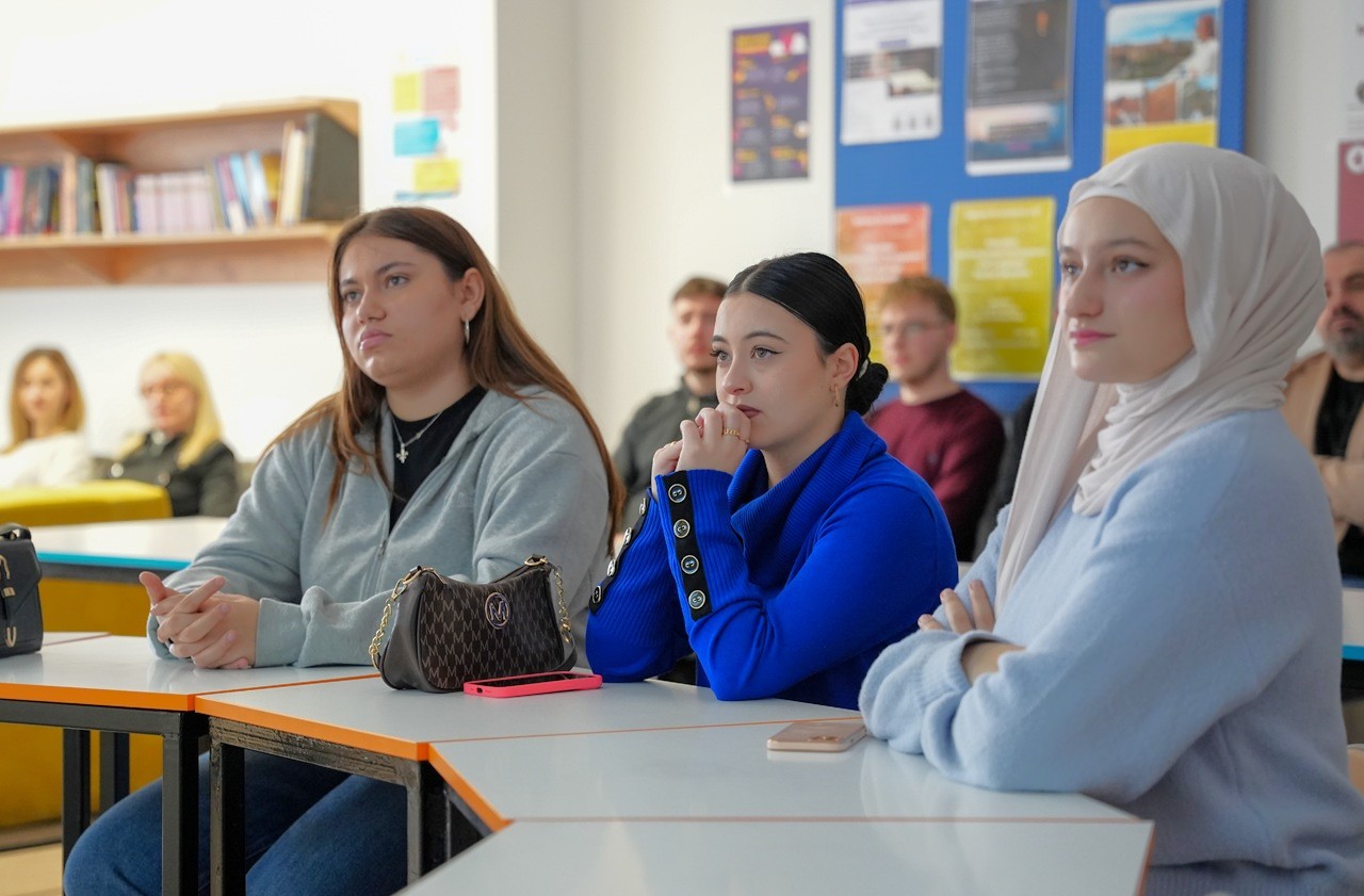 Kako bi učenici bolje razumjeli strukturu studija, dr. Emina Jelešković ih je provela kroz nastavni plan i program, uključujući univerzitetske izborne predmete, obavezne predmete, mogućnosti učenja stranih jezika i prilike za stručnu praksu. Multijezičnu dimenziju programa dodatno je obogatila prof. Dženana Uzunović, koja je predstavila dostupne predmete italijanskog jezika, pokazujući širinu jezičkog obrazovanja na IUS-u.