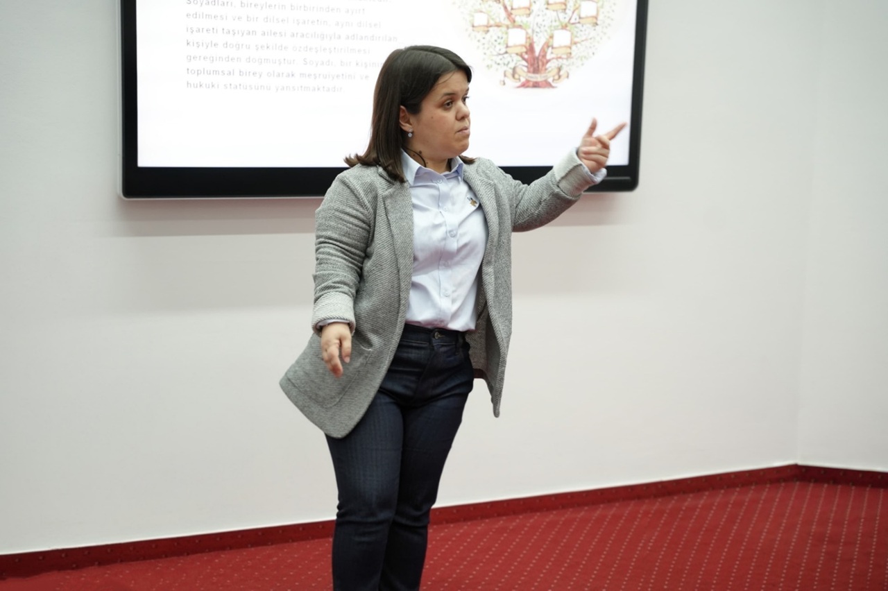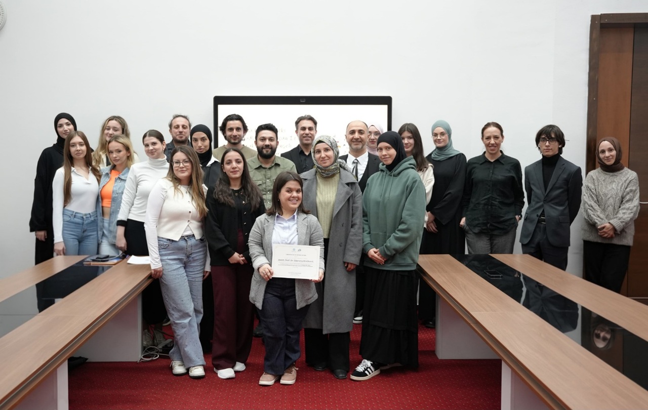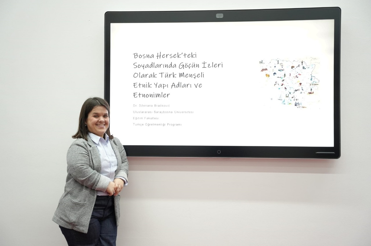 Prva sesija „Turkoloških razgovora” održana je u četvrtak, 26. marta 2026. godine, a predavanje je održala dr. Dženana Bračković, koordinatorica TLT studijskog programa, na temu: „Aktivni strukturni nazivi i etnonimi turskog porijekla kao tragovi migracija u prezimenima u Bosni i Hercegovini”.